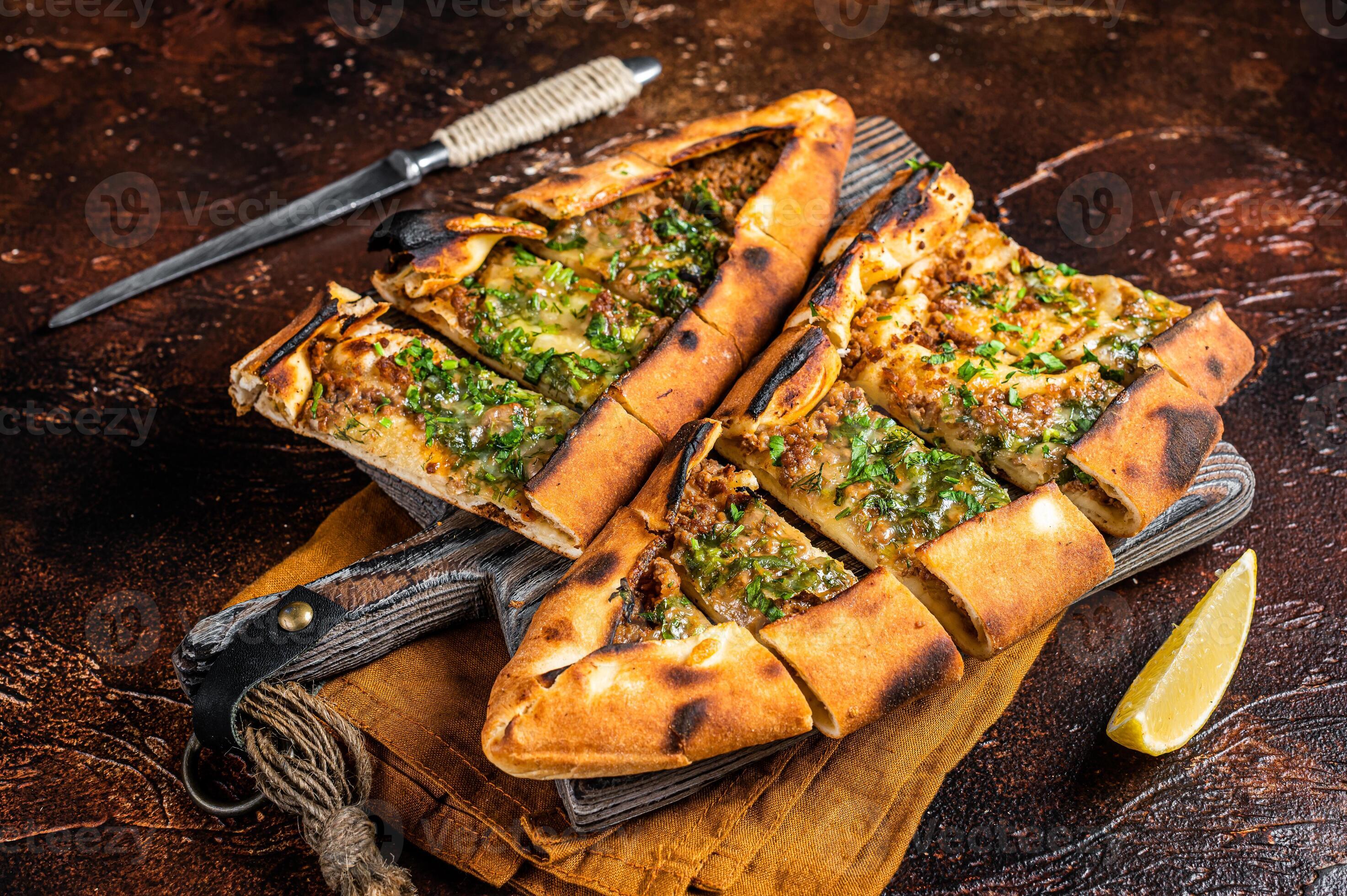 İnce hamurda özel baharatlı kıymalı harç, odun fırını lezzeti.